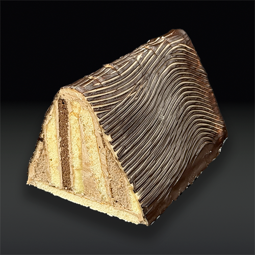 helle und dunkle Biskuitböden mit Schokobuttercreme gefüllt, mit Marzipan eingedeckt und Schoko-Fettglasur überzogen >enthält Alkohol!<